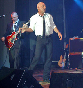 Vor der Bühne floss der ehrliche Schweiß des Punk’n’Roll wie es sein muß. Aber auch auf der Bühne waren die Klamotten schon lange so nass wie ein englischer Sommer.